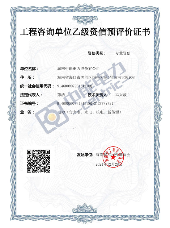 工程咨詢單位乙級(jí)資信預(yù)評(píng)價(jià)證書